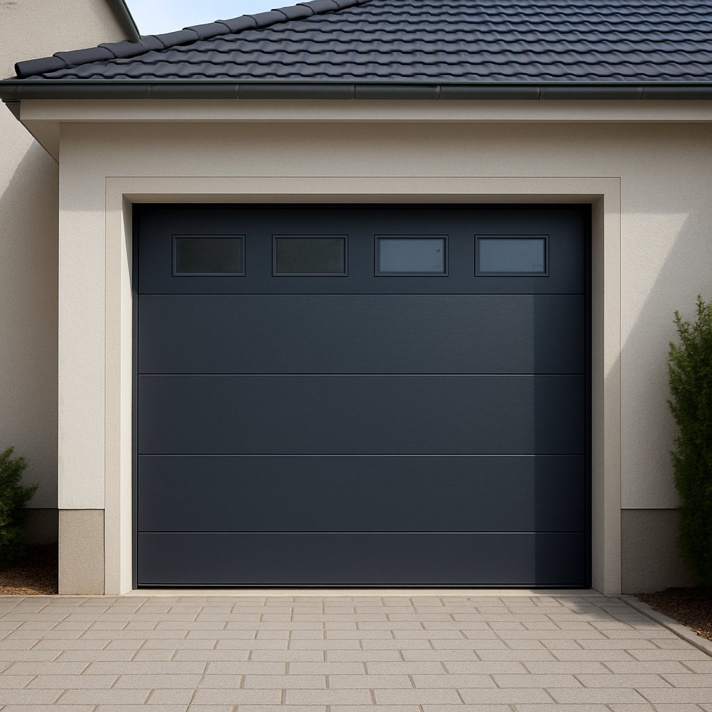 Composition: Les portes sectionnelles sont constituées de panneaux articulés qui se soulèvent verticalement le long du plafond pour optimiser l’espace dans le garage.